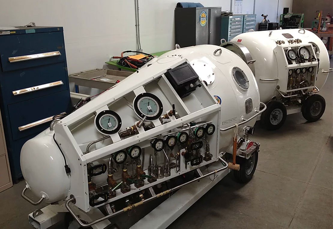 Transportable recompression chamber system in for a complete overhaul for system certification. Tinosa is one of two approved depot level repair facilities for Navy Diving equipment and systems. From in-place gauge calibration to Re-Entry Controls (REC) we can take care of all your DLSS needs.